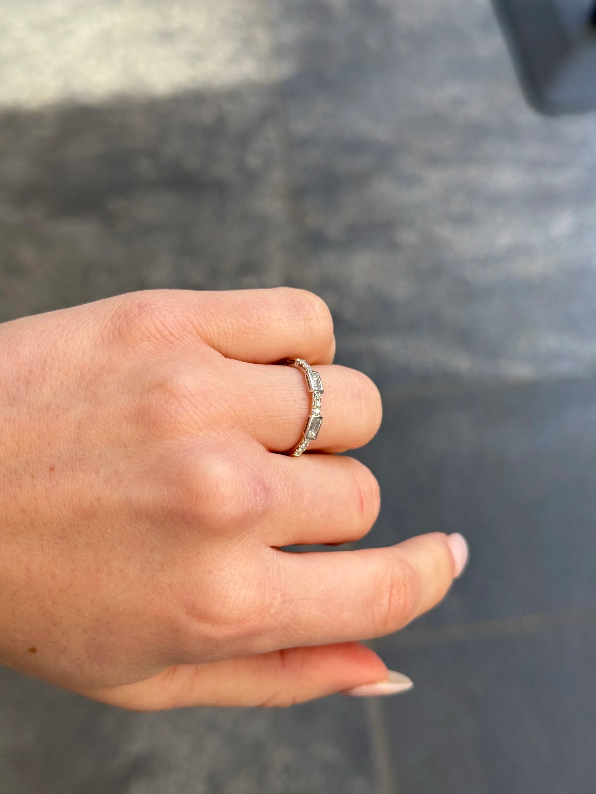 Ladies White Gold Round and Bezel Baguette Diamond Wedding Band