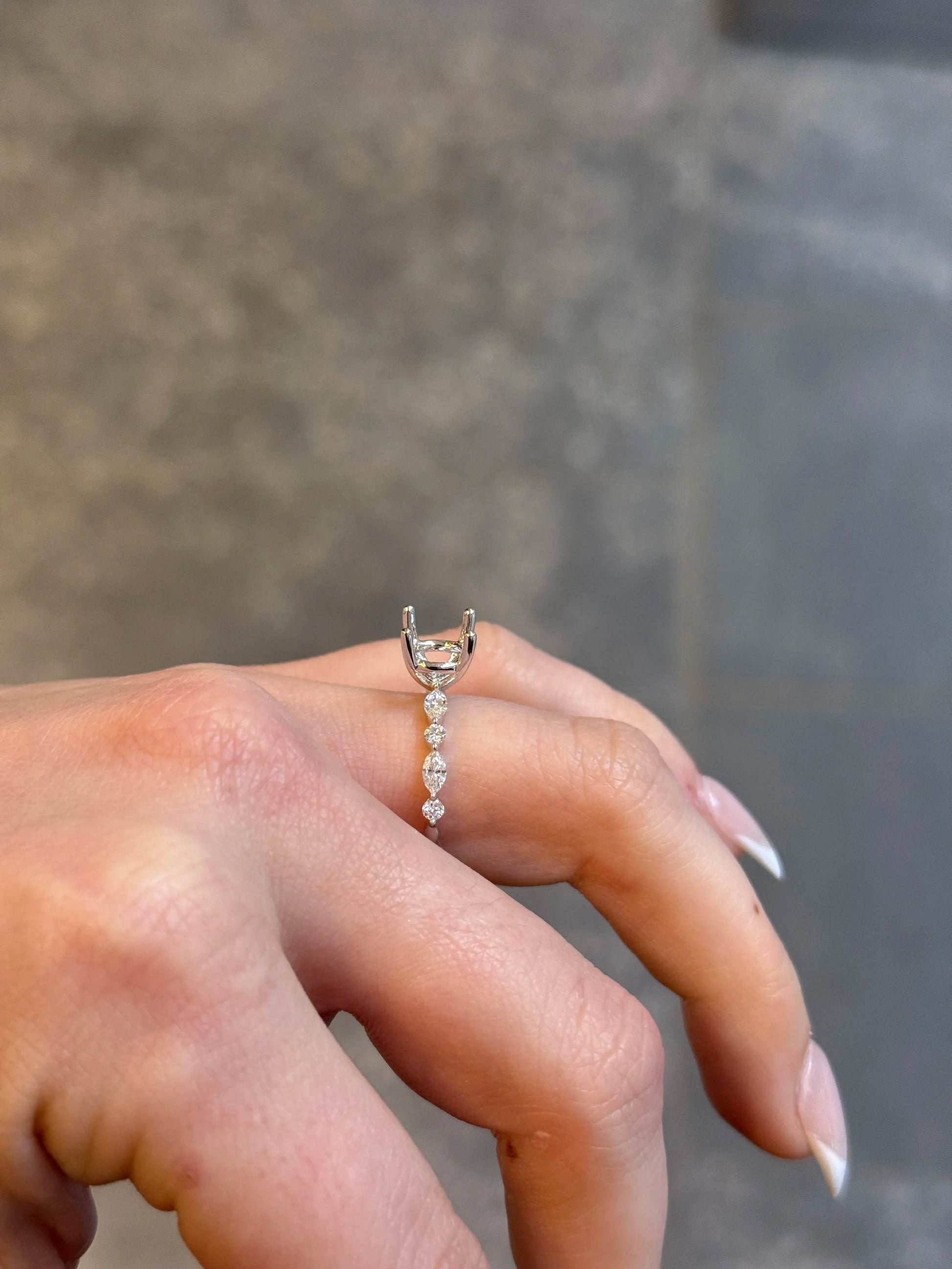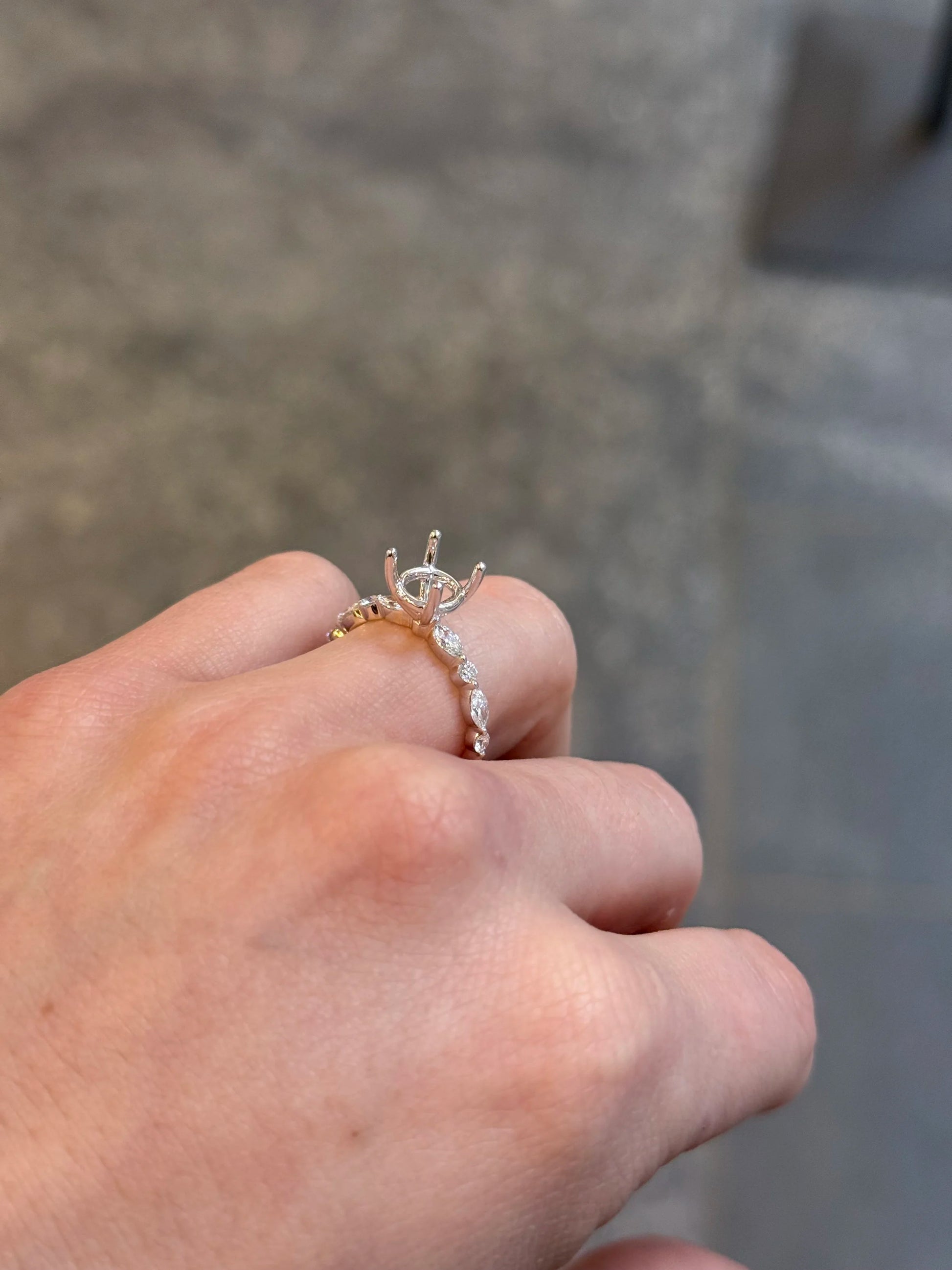Ladies White Gold Side Round and Marquise Diamond Engagement Ring