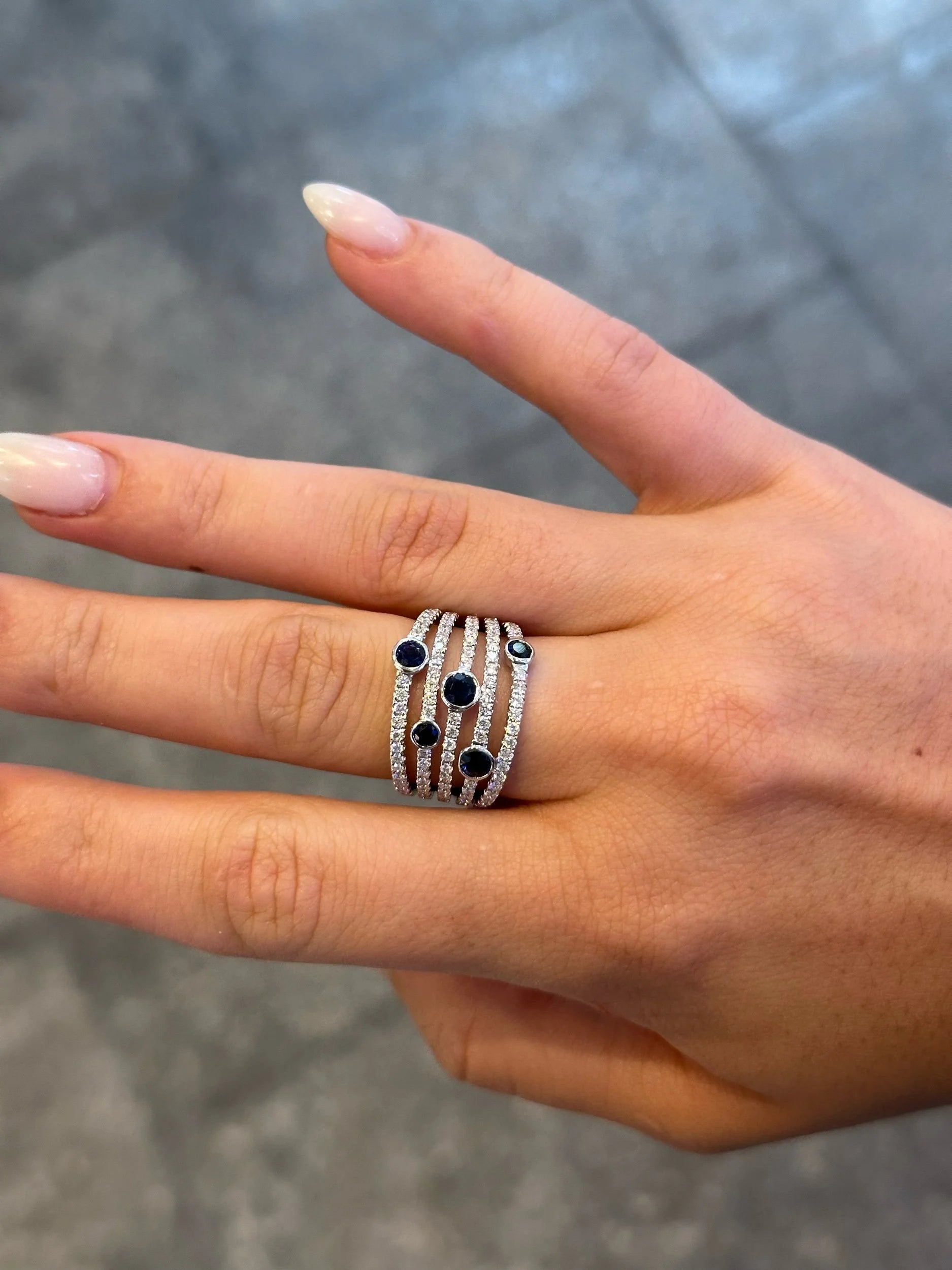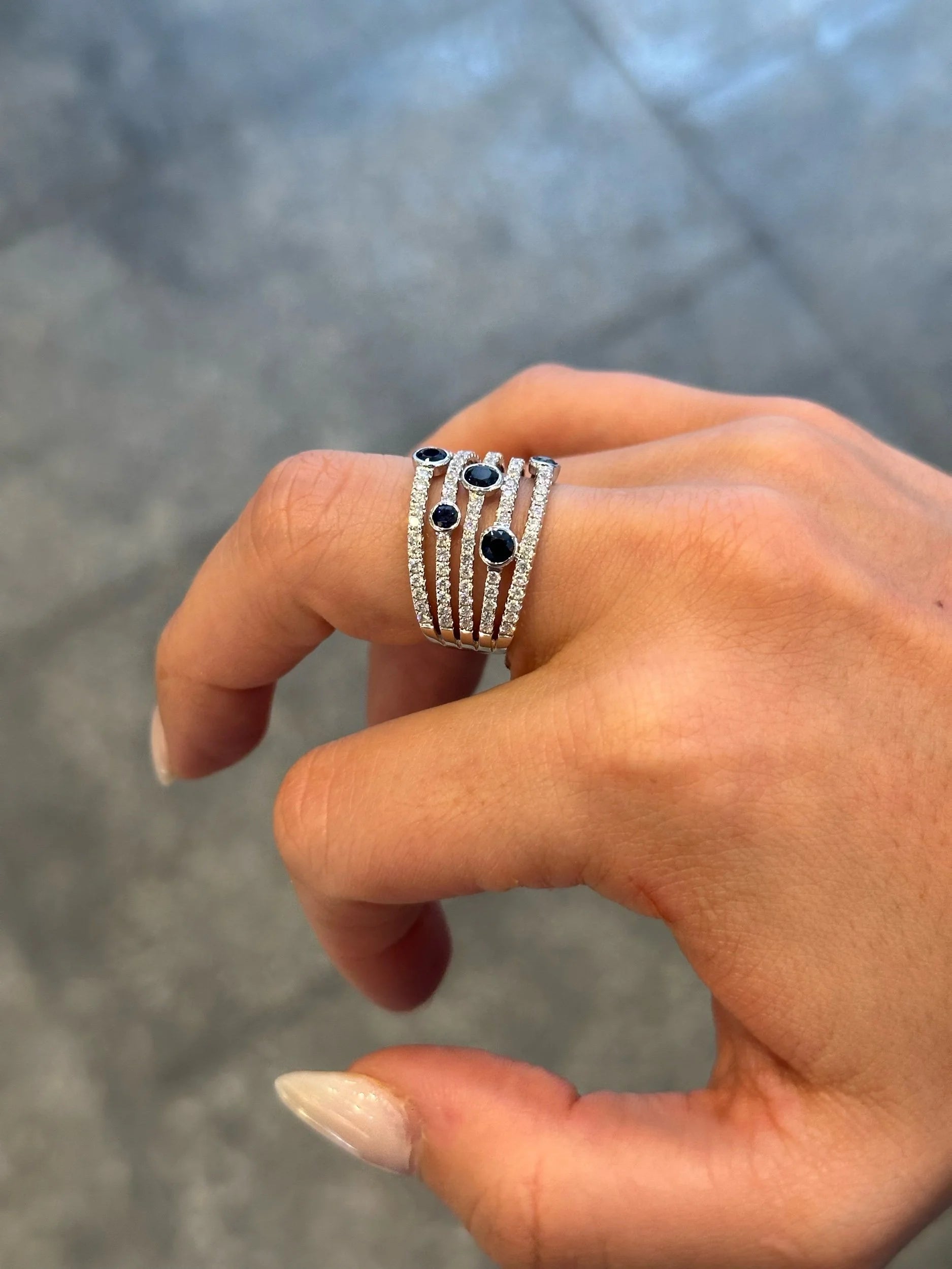 Ladies Wide Five Row Sapphire and Round Diamond Ring