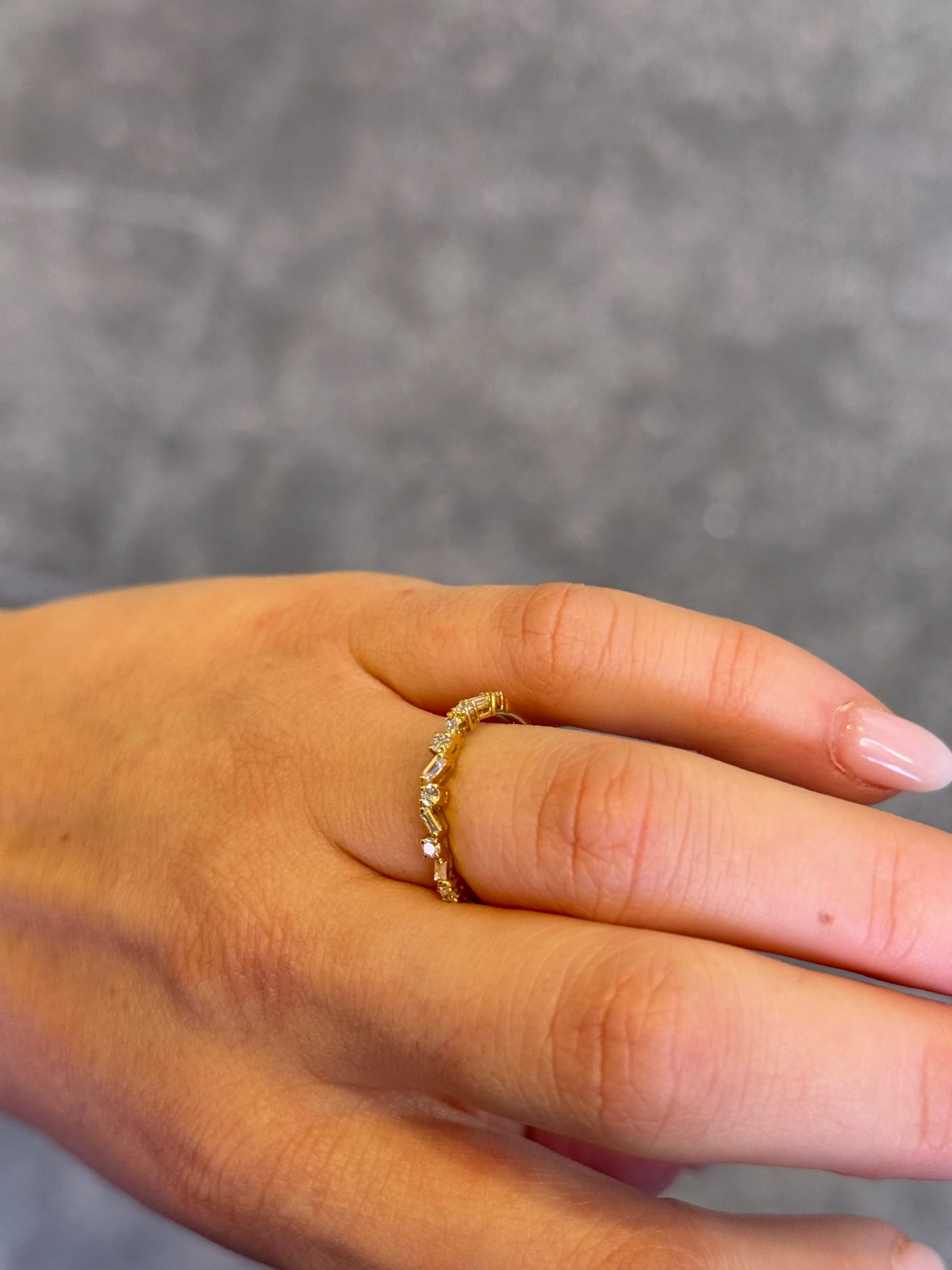 Ladies Yellow Gold Round and Baguette Diamond Wedding Band