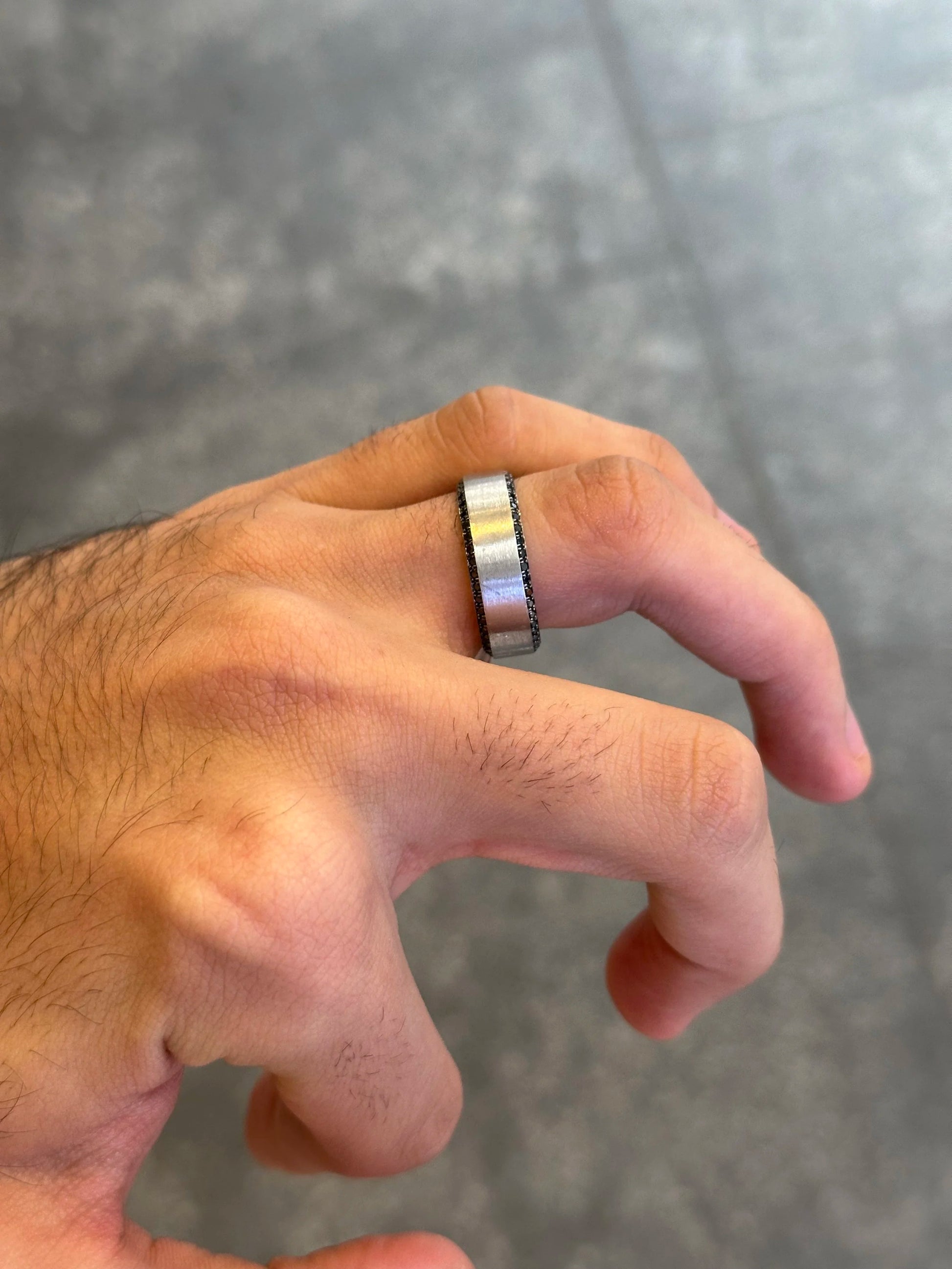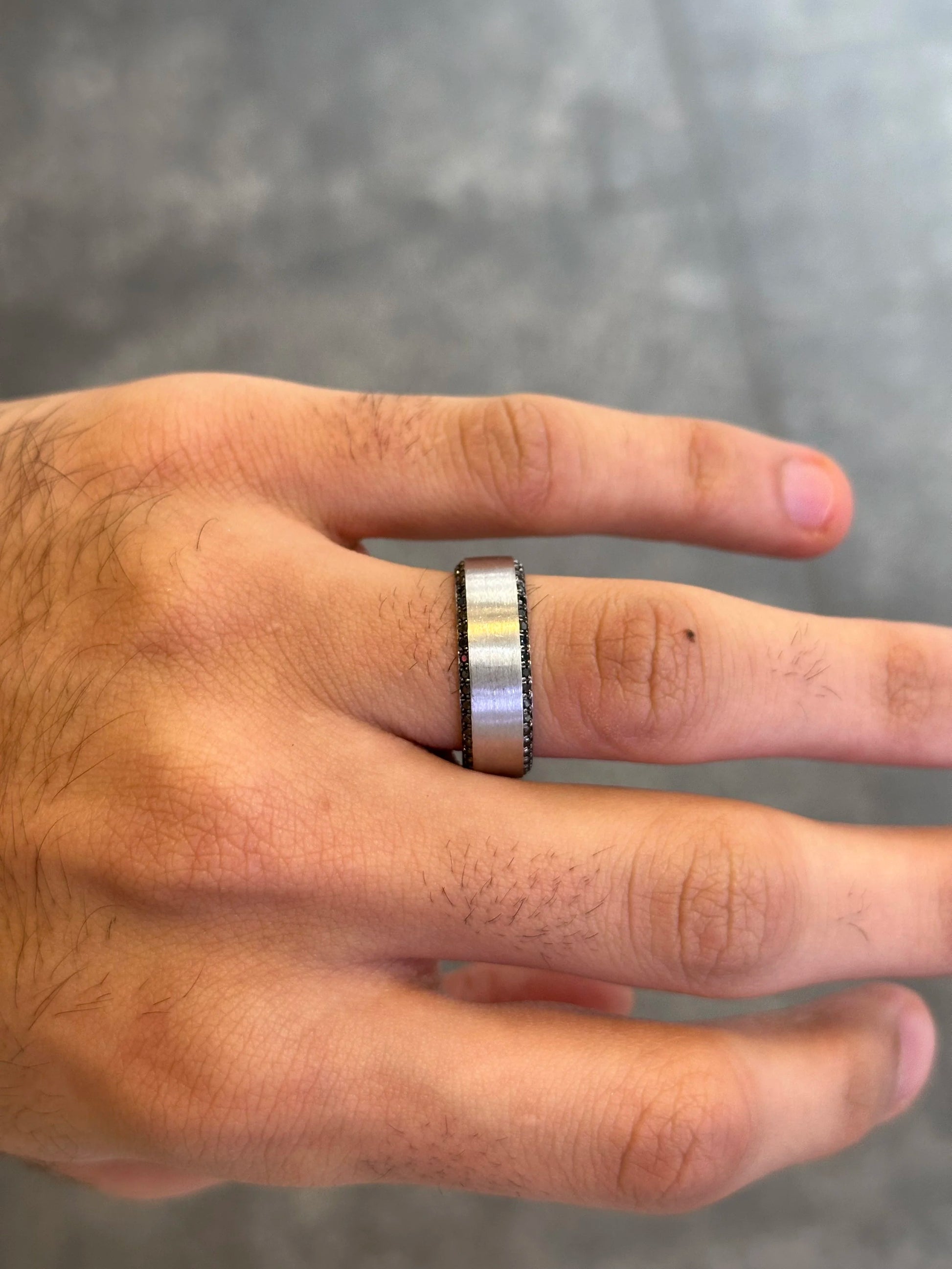 Men’s White Gold Two Row Black Diamond Wedding Band