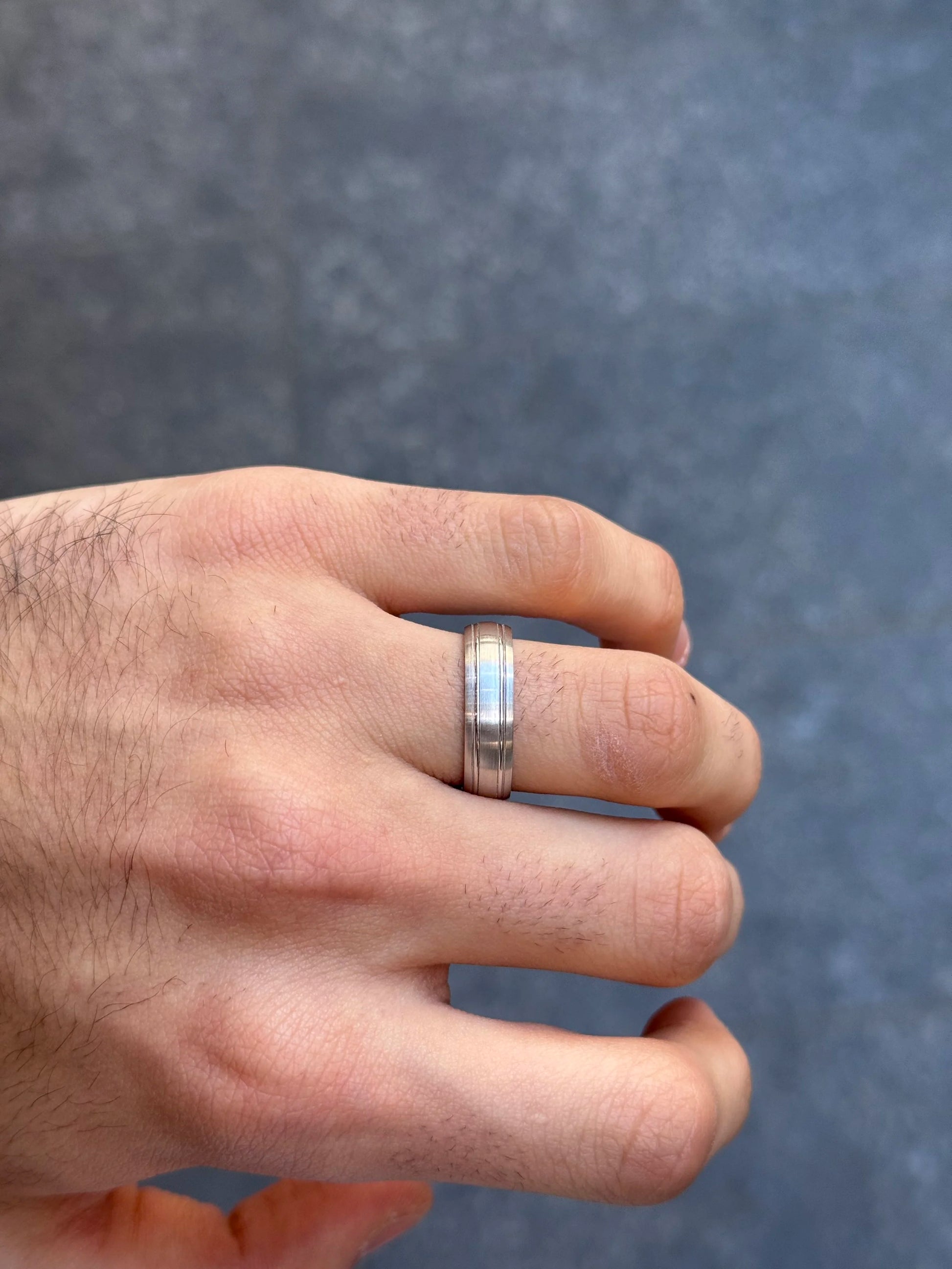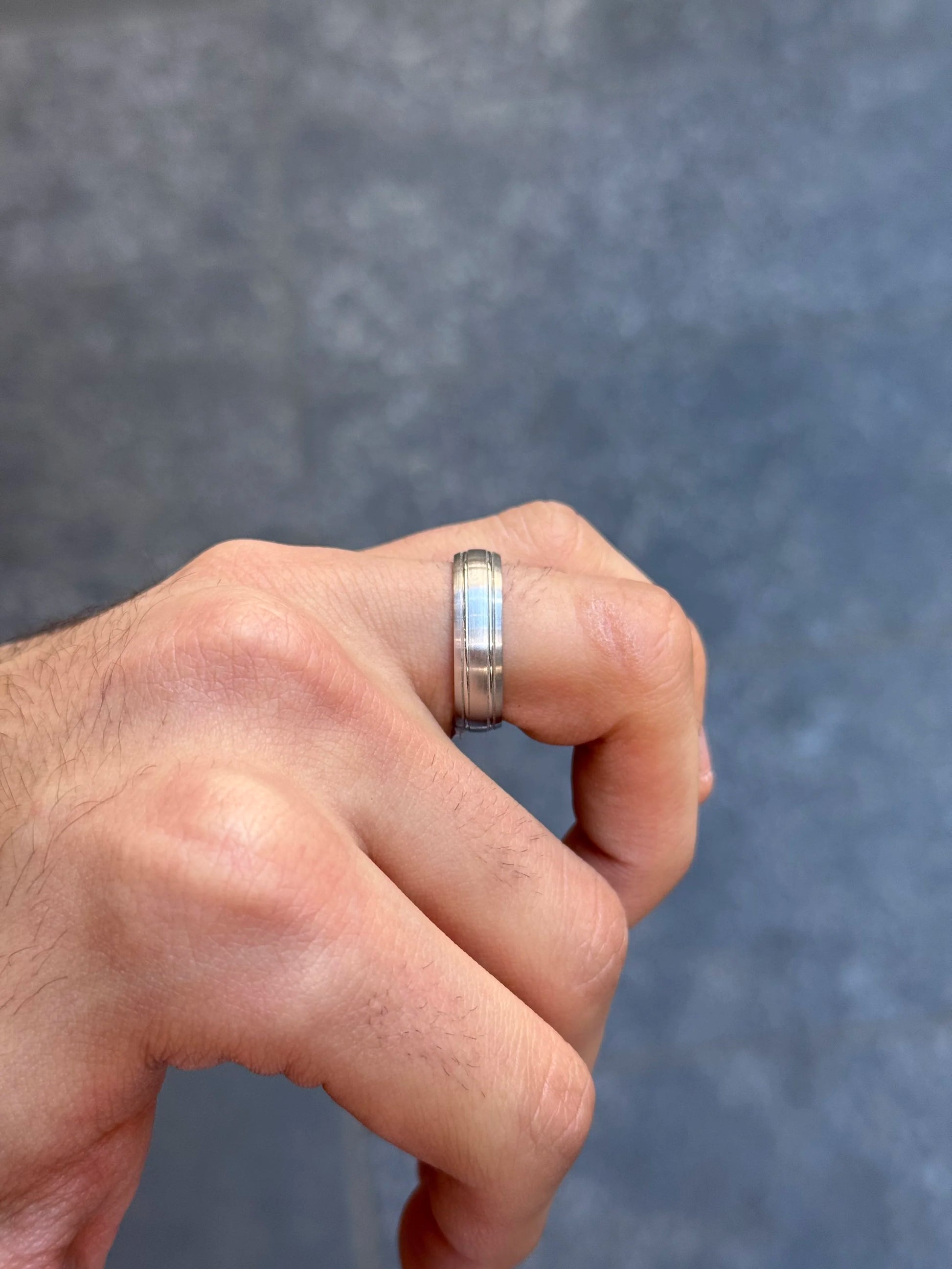 Men's 2 Row Polish Finish and Matte Finish Wedding Band