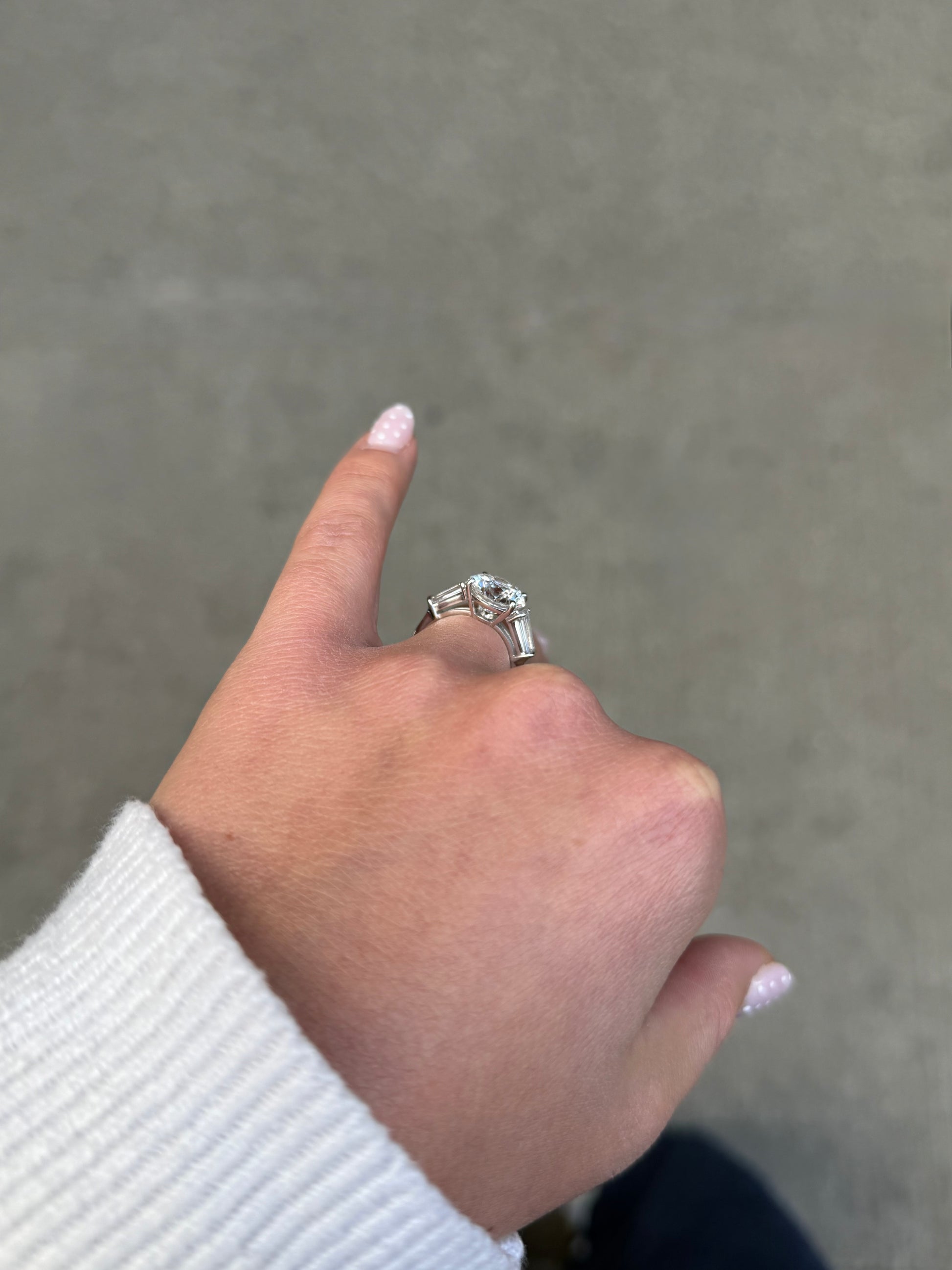 Ladies Round Diamond and Baguette Side Stone Engagement Ring